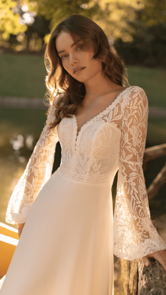 One of the main benefits of long sleeve lace wedding dresses is their versatility. They are perfect for a variety of settings, from traditional church ceremonies to scenic outdoor weddings, providing both coverage and style. The long sleeves add an element of modesty, making them a great choice for brides who prefer a more conservative look without compromising on beauty. Additionally, the lace sleeves offer a bit of warmth, ideal for cooler weather weddings. These dresses also complement various body types, with the lace enhancing the bride’s natural beauty, ensuring a graceful and unforgettable bridal appearance.